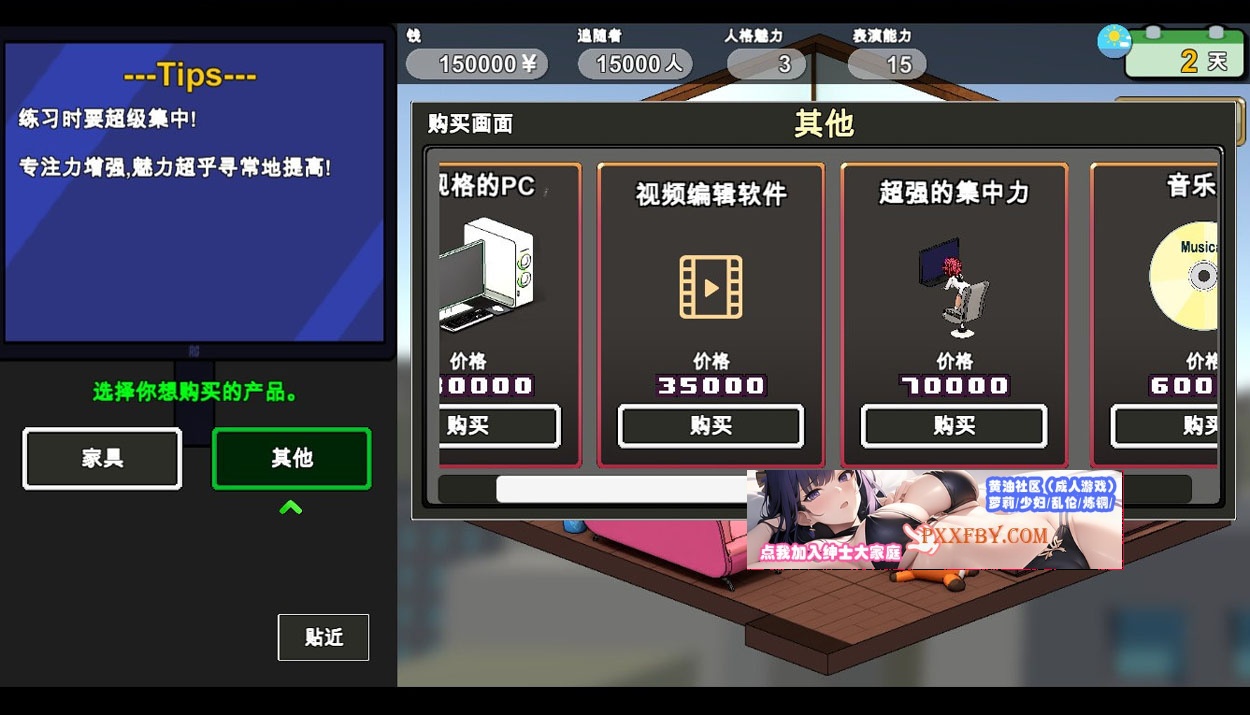操作主人公“马霍尔”带上粉丝吧。通过游戏发布,赚钱,和粉丝交流吧。