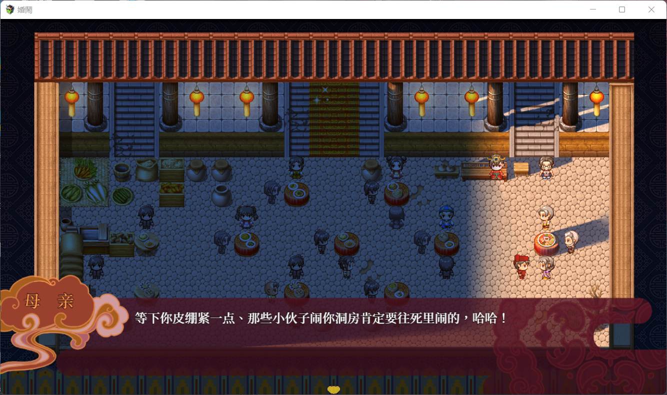 这是一款国风古代新婚夜闹洞房主题的奇妙RPG游戏。